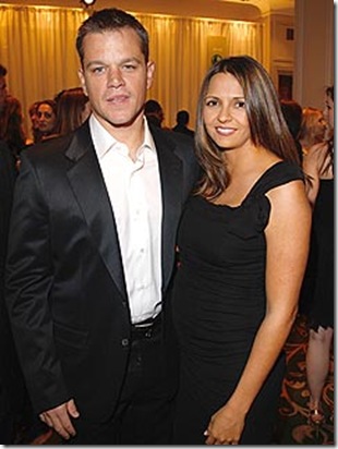 Luciana Barroso, the wife of Oscar winning actor Matt Damon, is pregnant, reported the People. Pulling a definite Angelina Jolie, Luciana was spotted with what appeared to be a baby bump (picture above) on Sunday at the Empire Film Awards in London (via). It will be the third child for the couple: Daughter Isabella Damon was born in June 2006, and Luciana has a 9-year-old daughter, Alexia, from a previous marriage.